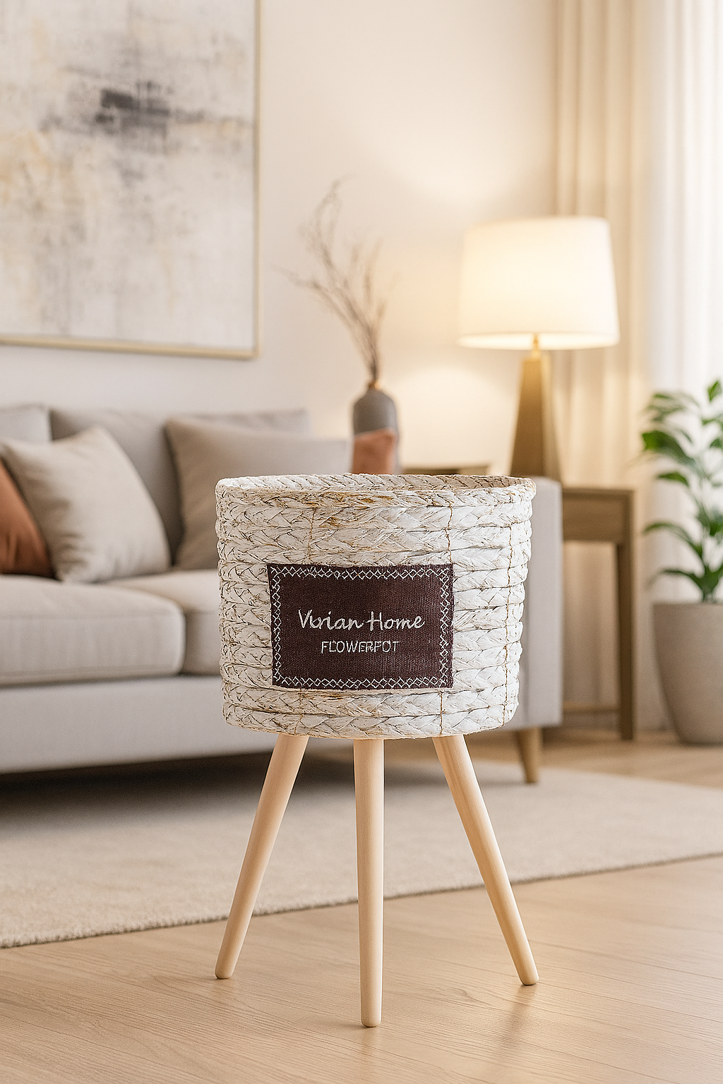 Macetero Nórdico Trenzado con Patas de Madera – Vivian Home